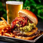 8oz wagyu steak burger • topped with sautéed foie gras • house apple chutney • aged provolone • peppery arugula • served with duck fat steak fries and black truffle salt